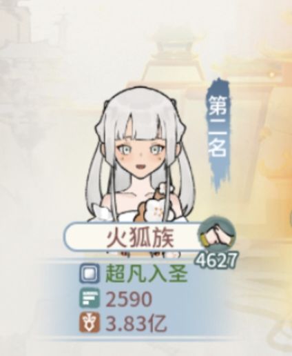 跨服第二:火狐族,10-19强者,上古10区族长,少数现存的上古大能之一,实力一直强大至今的老妖怪,本届跨服初始一度登顶第一,恐怖的实力让人闻风丧胆!