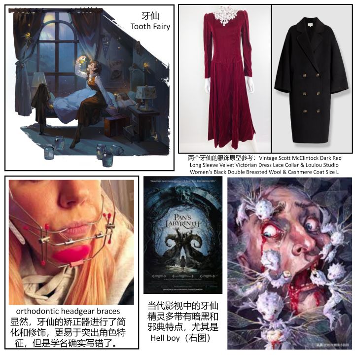 同时,在基础性格上,还要塑造她的身世和特征。单品2和文化1中,展示将”牙仙精灵“概念赋予给角色。