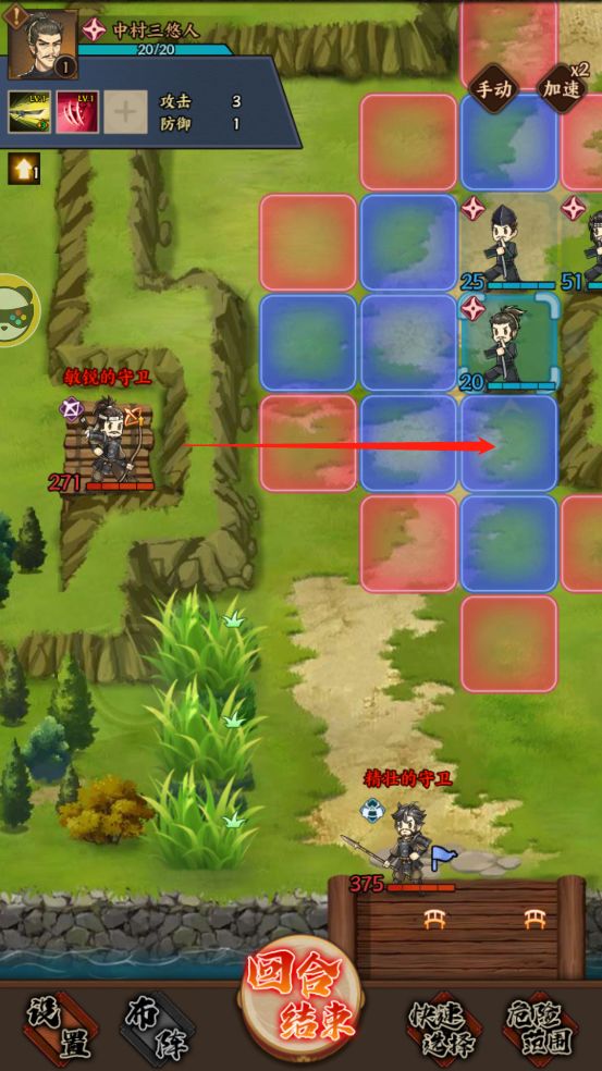 这关需要注意的就三个点,首先是弓箭手这里,只要越过弓箭手射程内的这一格就可以过去了