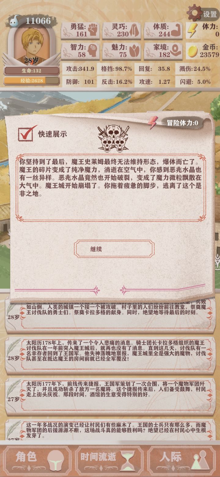 死里逃生总有14次,打完魔王还剩7次,没有讲究什么策略,主要就是为了少SL