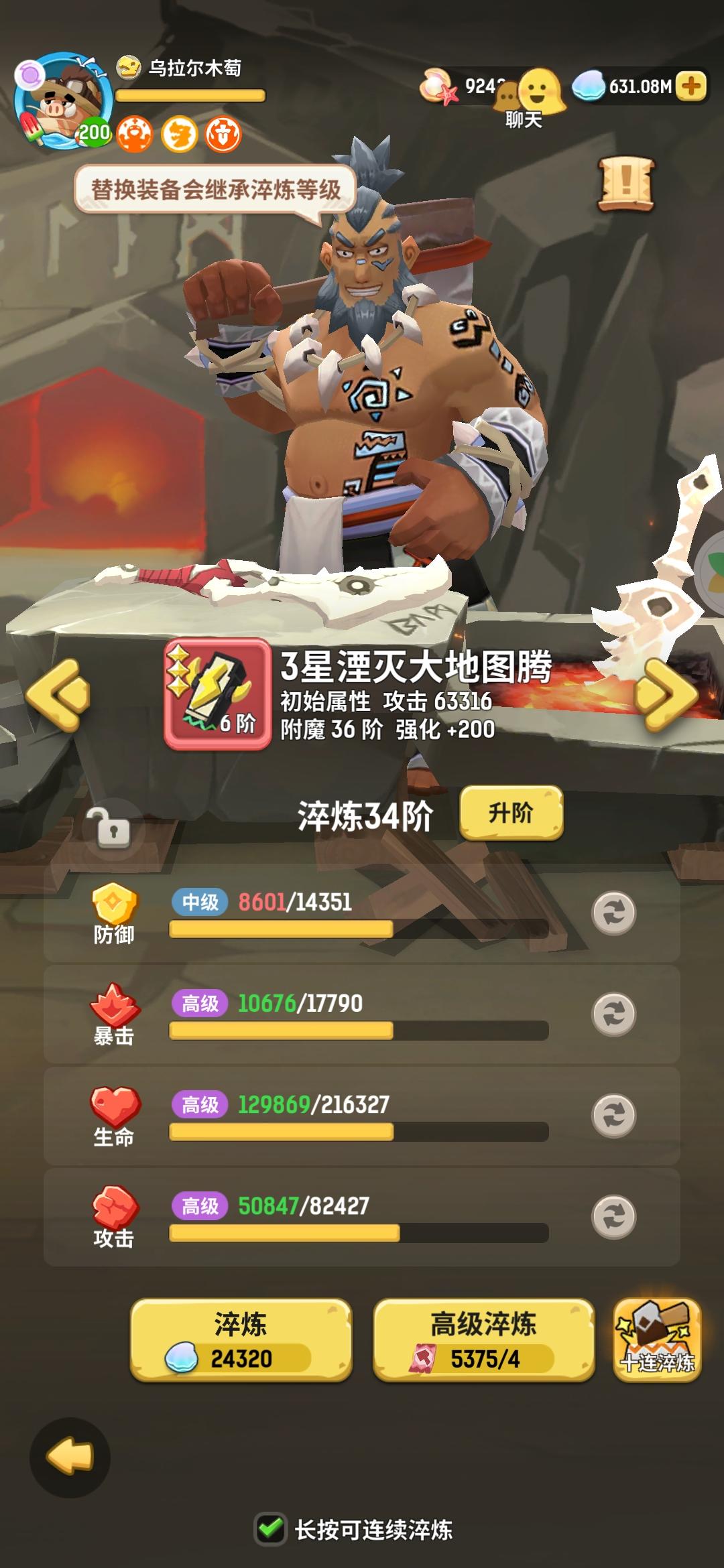 闲着没事的可以淬炼一下装备,淬炼一件攻击从高级到特级70M的贝壳,淬炼8件大概用了420M贝壳。因为开始用的连点器还是比较费贝壳的。后来手动点了2天。点一件也得60M左右。这要是点满不知道需要多少?虽然攻击点满了就不掉点了。但是没贝壳不说还费眼睛。还是算了吧。