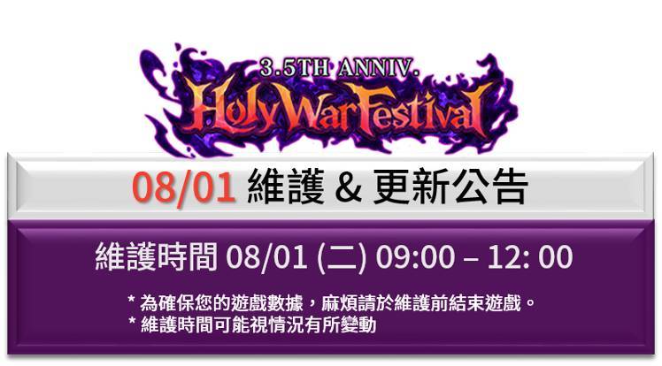 - 日程:08/01 維護時