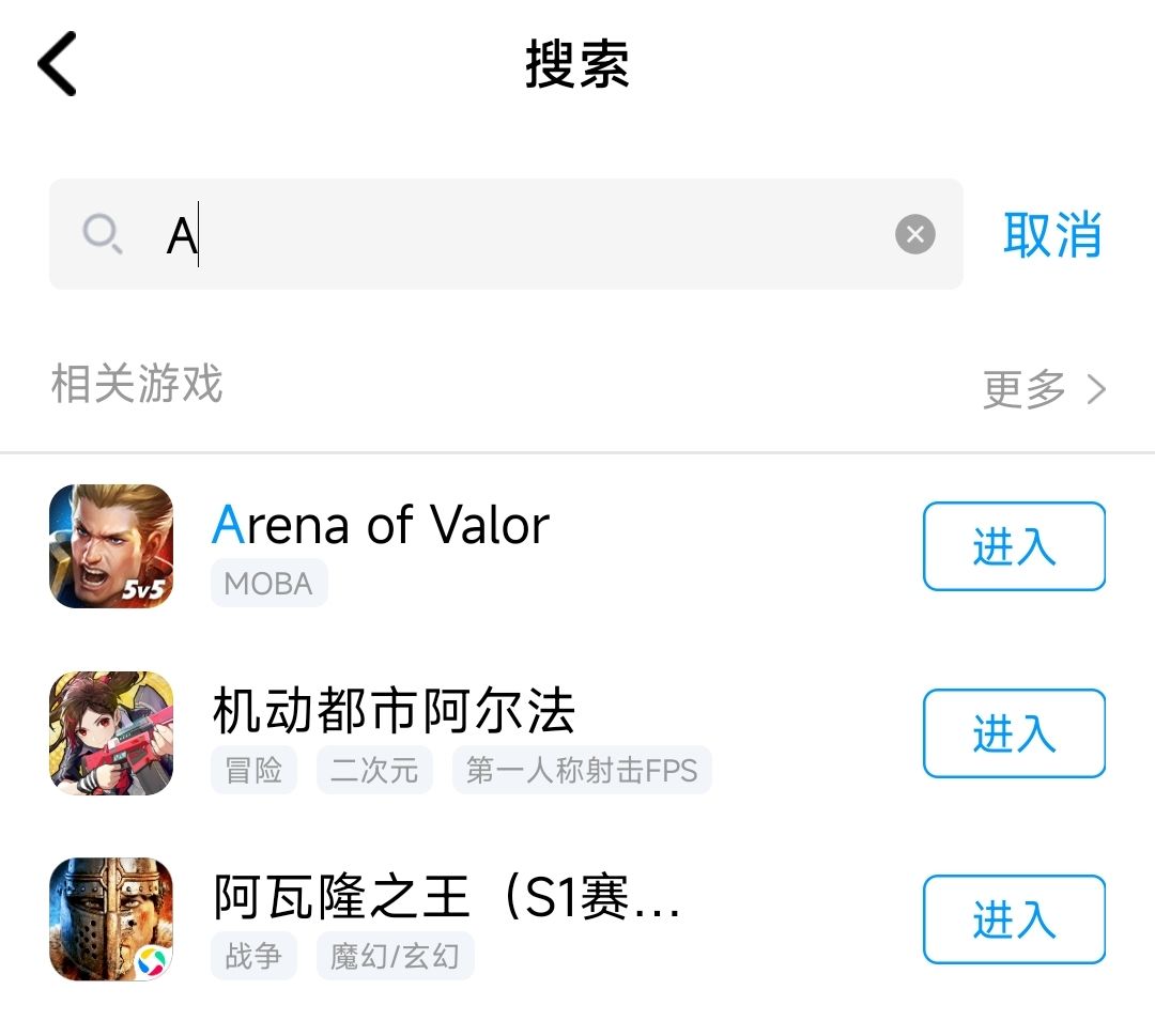 打开手机QQ ——→ 游戏中心 ——→ 搜索栏输入A或游戏名 ——→ 下载游戏。