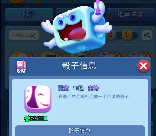离谱的是,百变的变化的骰子等级和自身等级是一致的,如果你的百变为15级,那么变化的传说骰子也就是十五级。上限和下限都极高的一张史诗骰子