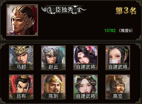 马超、赵云、吕布、陈到、高览、黄忠、马腾和三位自建武将