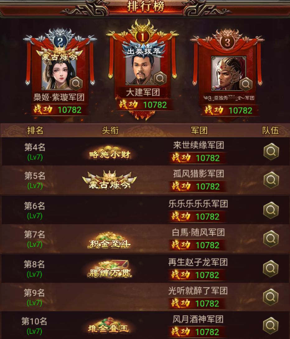 其中,“武将名 x%”代表该历史武将在本次战役的前十玩家中使用率为x%。
