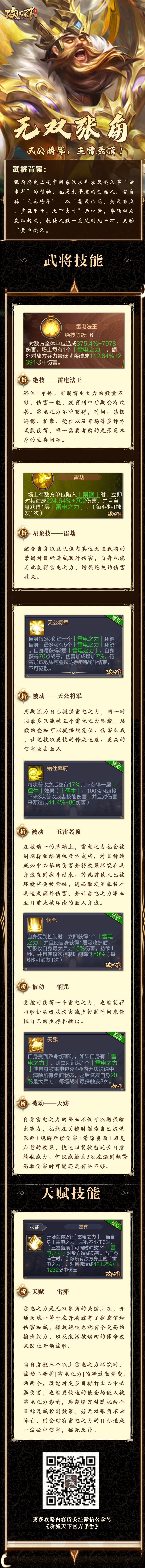 武将图鉴丨无双张角技能介绍一图读懂!天公将军五雷轰顶!