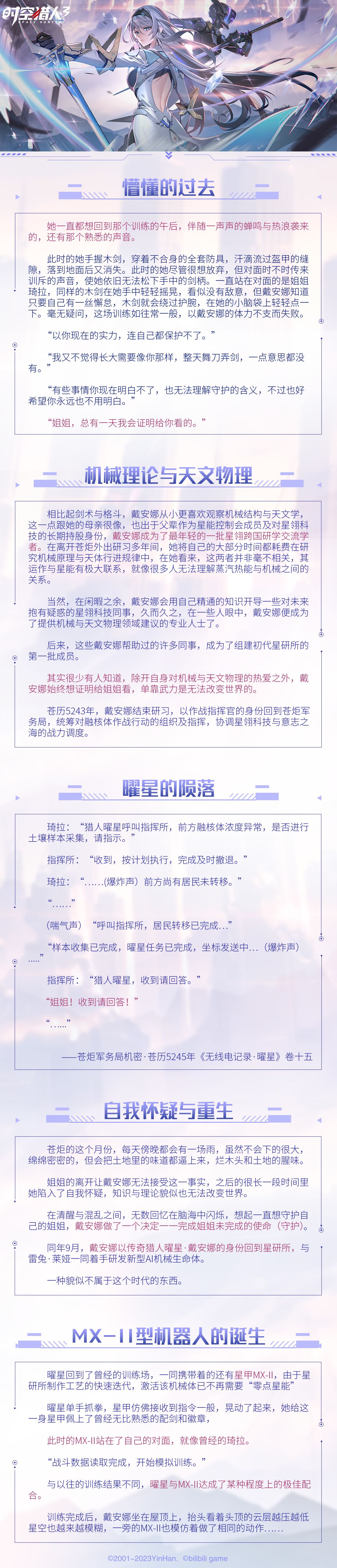 「曜星·戴安娜」出生于高贵荣耀的古老家族,虽然一直拥有站在苍炬顶端的羡人背景,但家族的战士一直继承着曜星的代号,世世代代为苍炬的和平竭尽全力。