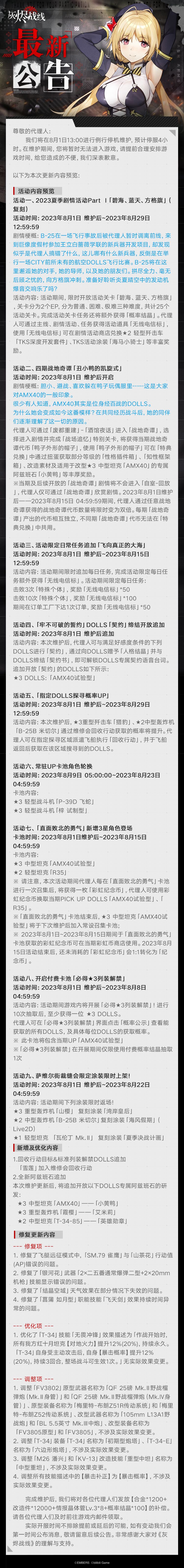【灰烬战线】2023年8月1日更新维护公告