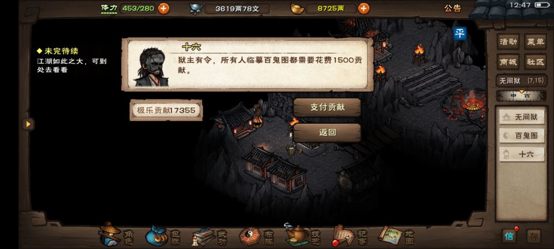 无间狱百鬼图,十六兑换,1500贡献(打怪升级,3500体力即可满级)