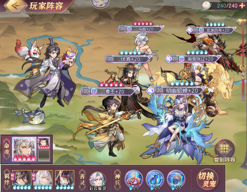 根据前文总结,马超的整体技能更加偏向辅助了,是一个具备强大单点威胁的辅助,马超命魂有意改变过往突击阵容的思路,意图将突击阵容也转化为有持续作战能力的阵容,首先考虑进入蜀突阵容,但是整体表现比较一般,打不过当前主流阵容,主要是因为主动命魂技释放需要铺垫,但是又是一个实打实的先手技,越早释放才能越早发挥价值,等第一波伤害全部打完才开启命魂技,实在是有点跟不上节奏。所以这里推荐的是吕布貂蝉的阵容,马超作为提高队伍回怒和生命上限的辅助。
