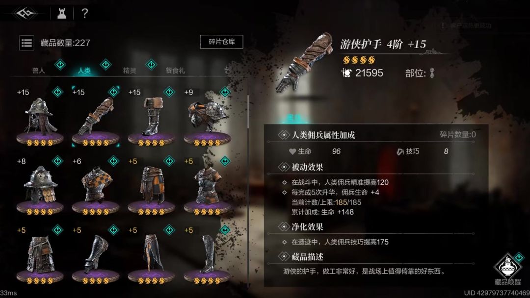 兽人和精灵一样有比较好的藏品,加的属性人类一样可以享受到,这种藏品也可以升级。