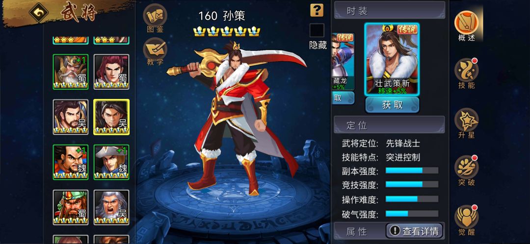 三国战纪手游是一款养成型游戏,角色的成长和武将的招募都是循序渐进的过程。如今冠将招募方式可谓多样,自从古董探宝池加入必出冠将的规则后,一些较为稀缺且还有一定过渡意义的冠将,普通玩家也有了快速获取的机会,再也不用为新手发育期没有趁手的过渡型武将发愁了。在古董探宝三列奖池中上榜的15名冠将,有过气不过时的武将,也有大图鉴加成武将,当然也有即战力尚存的武将。其中孙策在新手玩家首轮古董探宝80次必出冠将中有很大概率获得,作为久远的老武将,孙策能力无法与时下竞技新贵们分庭抗礼,也还能为萌新玩家辗转征战新手期提供竞技过渡的作用。