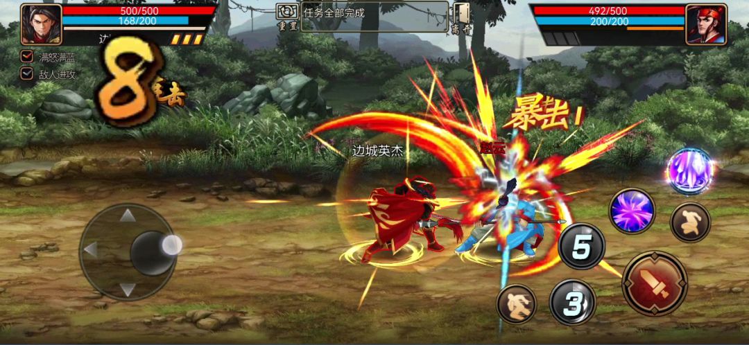 必杀技:森罗万象(风属性,消耗一格怒气,冷却30秒),人剑合一,剑随意动,召唤剑阵,连续急速穿刺范围内目标,造成伤害!范围内吸附、追踪、破倒地技能,穿刺追击阶段影遁带一定的无敌效果,怒气充沛时可作为起手技能。但此技能伤害并不算高,会给对手积攒很多的怒气和蓝量,所以此技能可作为收割对手残血武将,但不可打击对手血量健康的武将,那样的话会起到伤敌五百而自损一千的反效果!