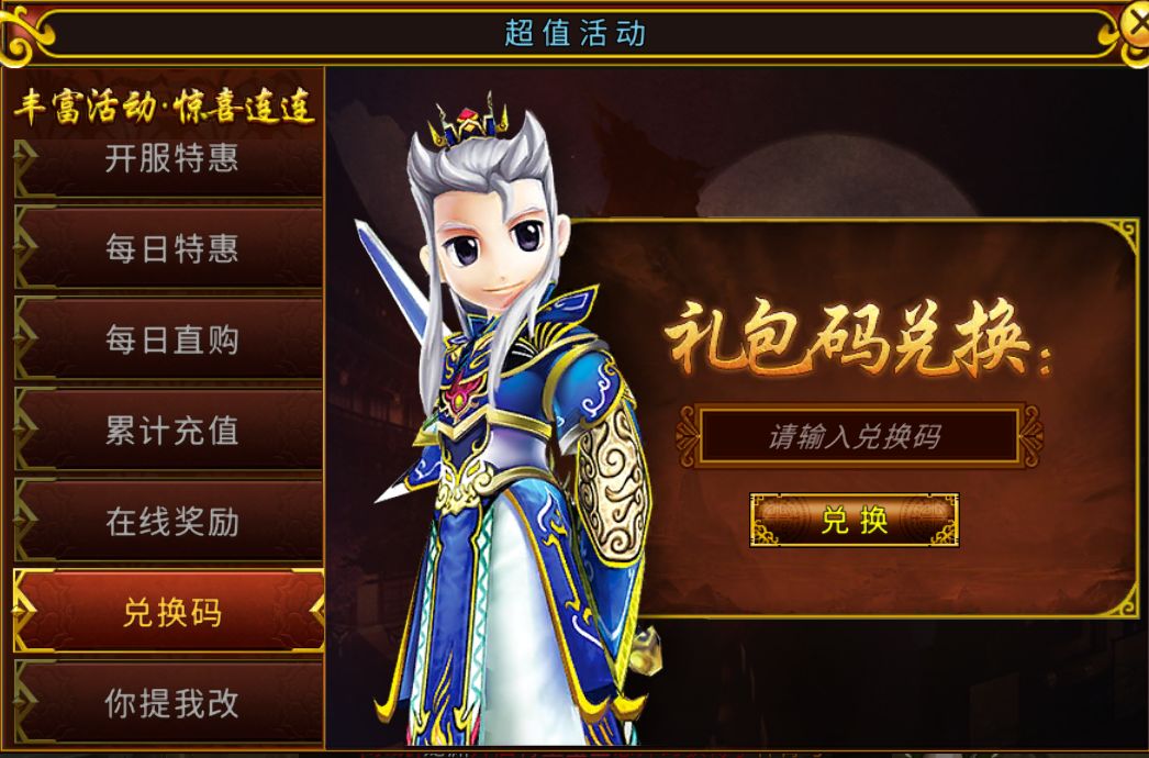 >>第四步:获得礼包码后,进入游戏,依次点击活动 - 兑换码 - 输入兑换码即可兑换游戏道具奖励。