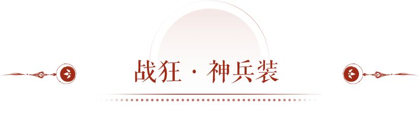 作为神兵外观其中一部分的神兵背饰散发出红黑色气焰,神秘而凌厉,仿佛能够吞噬世间一切,在浴血奋战时激发神力,使其如战神一般守卫着家国的大好河山。