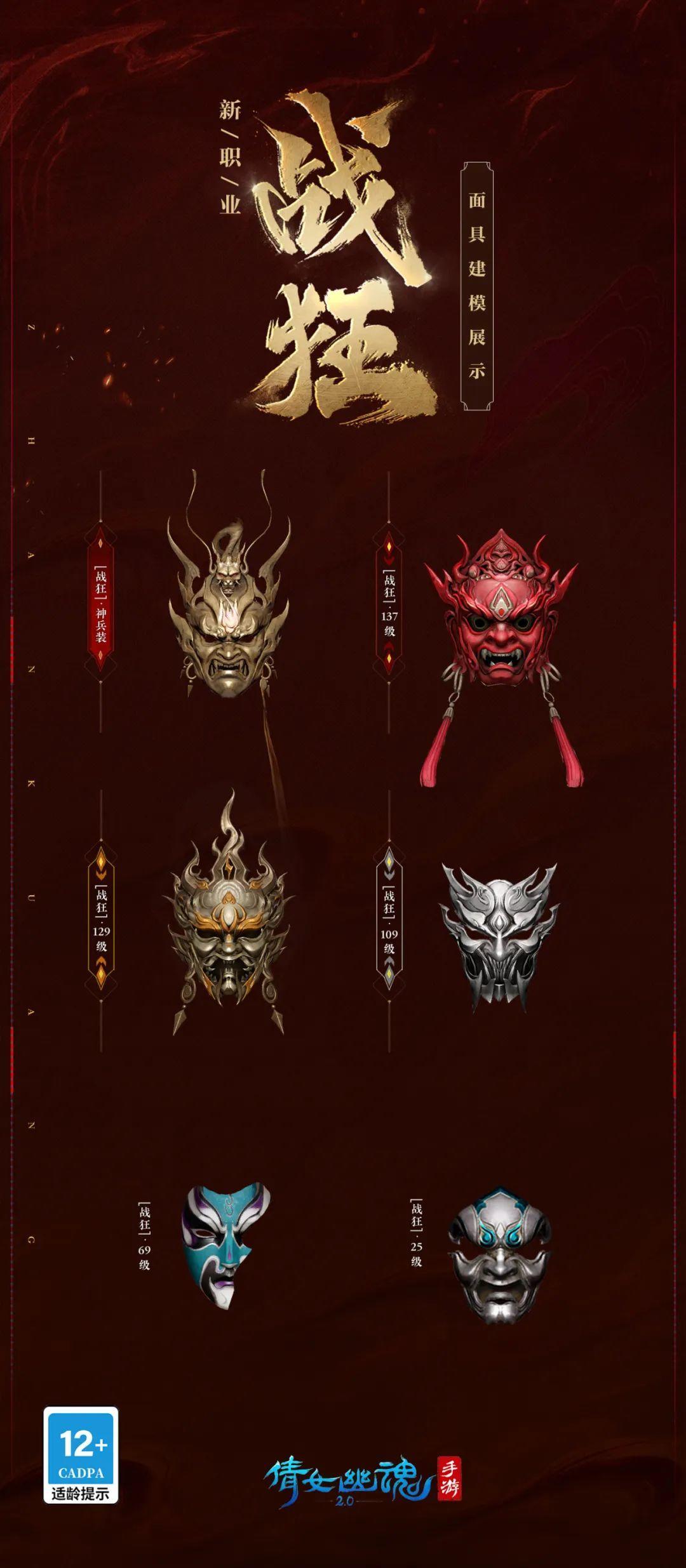 不同的等级也对应着造型各异的鬼面外观,等级越往上鬼面造型越复杂!