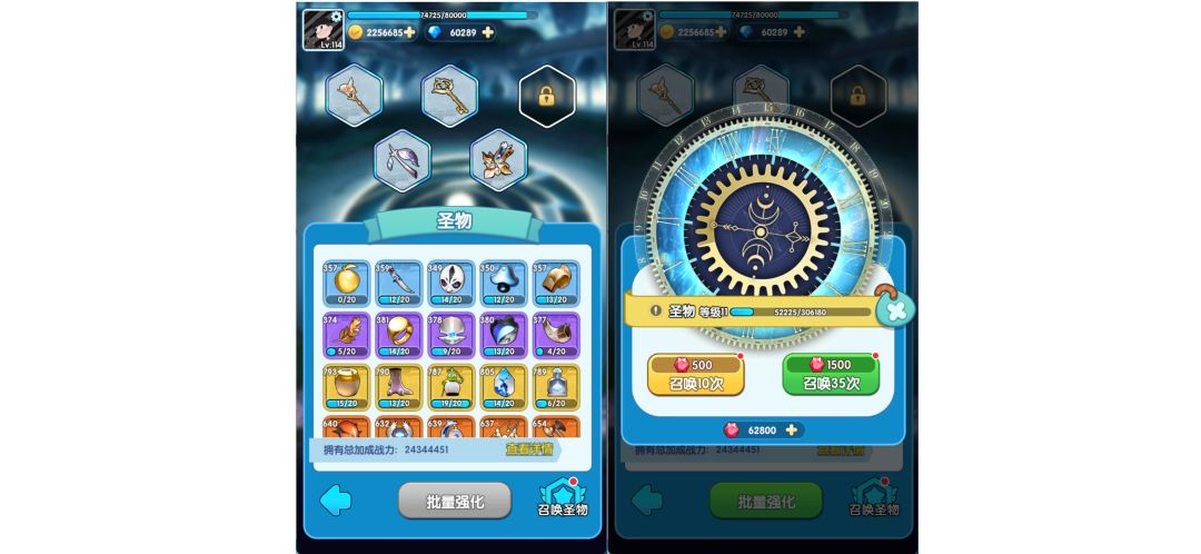 训练家等级达到50级后,将解锁“圣物”玩法。通过使用魔晶可以召唤圣物,召唤的圣物将收藏在圣物陈列柜中。召唤次数越多,召唤等级越高,可以召唤出的圣物品质越高。