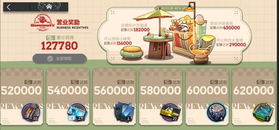 我们可以看一下“营业奖励”这个列表,有点类似肉鸽模式的战令,奖励都是和积分挂钩的,包括上面家具,积累的积分越多,奖励也就越多。
