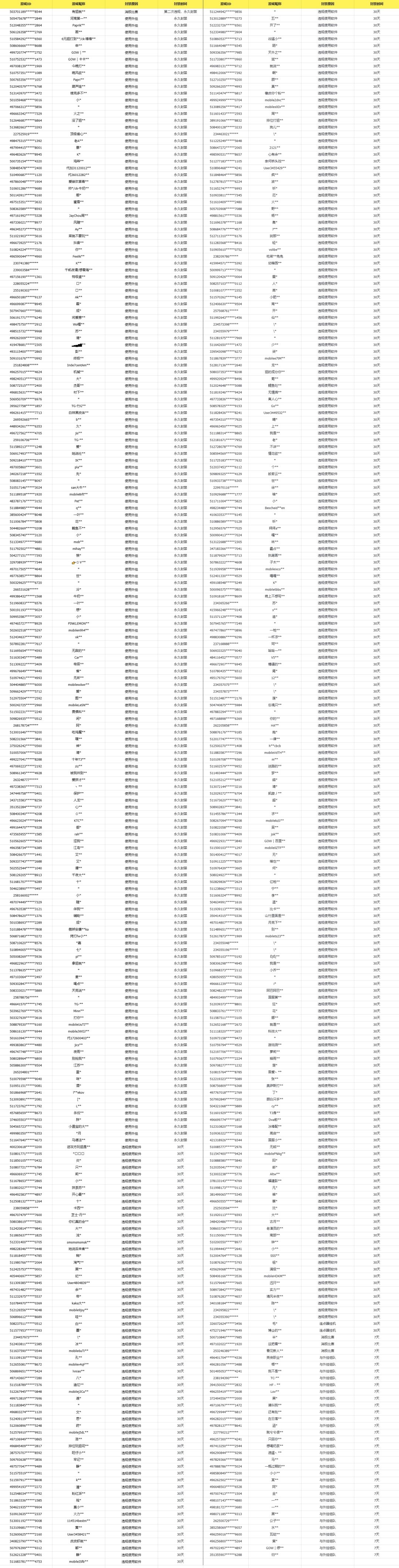 8月1日违规封禁名单如下: