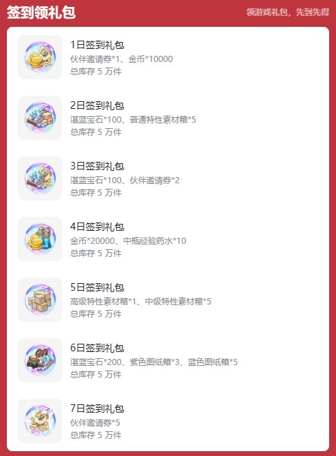 系统会根据连续签到的天数发放对应的兑换码,领取到兑换码可以进入游戏中进行兑换。
