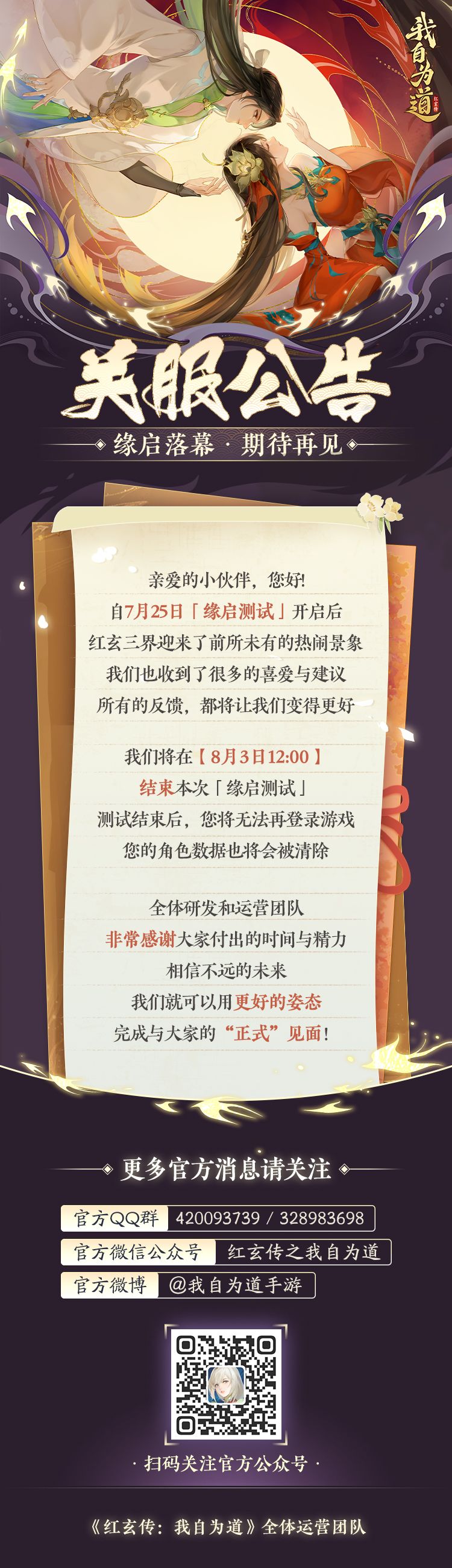 虽然「缘启测试」即将结束,但红玄世界的故事远不止于此,也希望我们之间的故事远不止于此。期待下次相遇的时刻,我们将会以更好的姿态与大家见面!
