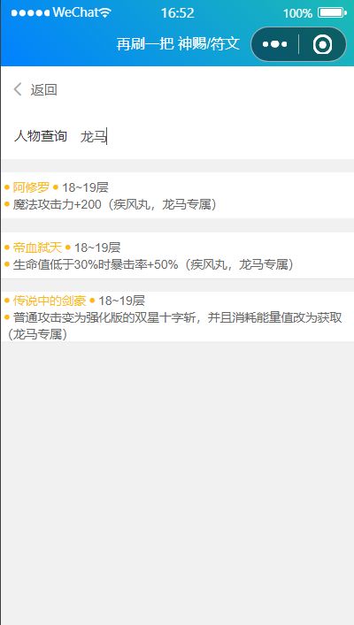 每次我想装符文增加战力时都得去一个一个查看对应的孔数和类型都有哪些,再进行筛选,所以我干脆花了3天时间自学了小程序并把它做了出来,看效果。