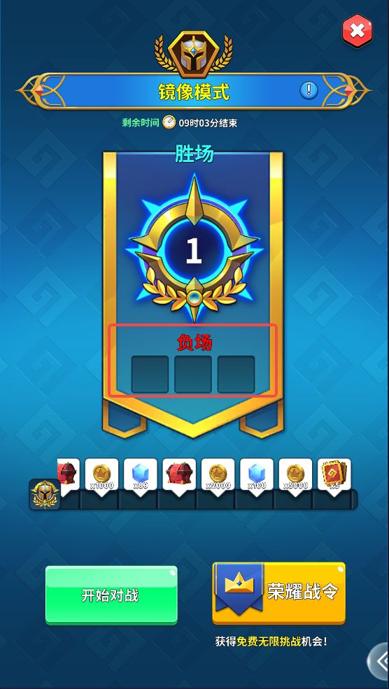在镜像模式中,有3次机会,失败3次后本轮比赛将结束,无法继续比赛。召唤师需要花费钻石重头开始参加比赛,购买了荣耀战令的玩家可获得免费无限挑战的机会。(重新参加比赛,已领取的胜场奖励无法重复领取)