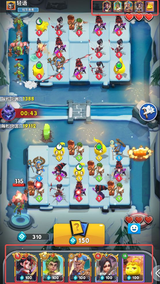 镜像模式与对战模式不同,该模式下并不是由玩家构建卡组进行对战,而是由系统随机构建卡组。这要求召唤师对游戏内的各个英雄都需要有足够深的了解,包括一些平时登场率和使用率不高的冷门英雄。特殊情况下甚至会出现卡组内的英雄都是辅助和控制,这时需要召唤师们根据卡组内的英雄制定适当的对决策略。例如遇到下图中的卡组,卡组的核心是服部半藏,对局思路就不是常规的守住已方战场,而是应该尽可能主动的破坏对方战场。