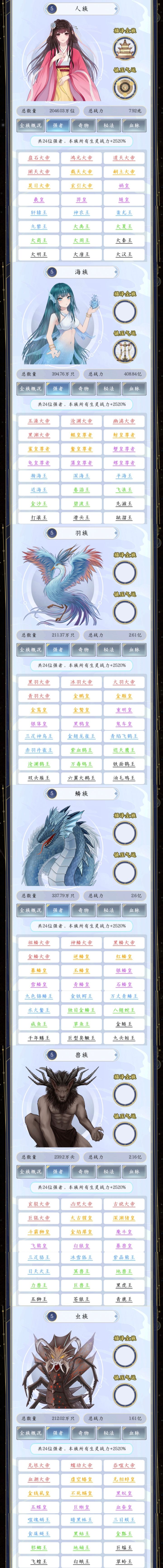 普通:人族,海族,羽族,鳞族,兽族,虫族