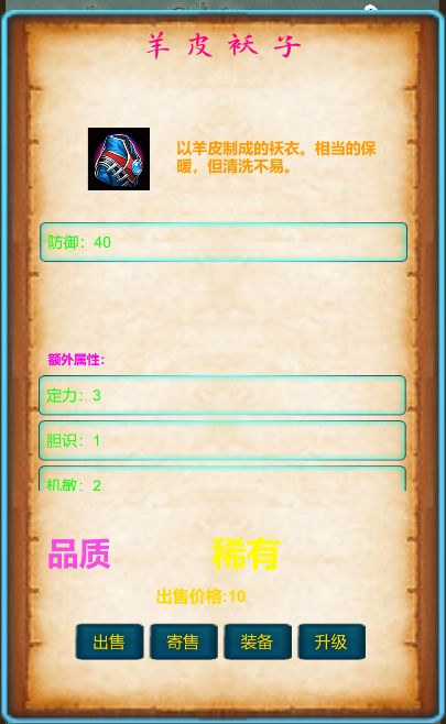 每件装备品质都不同,额外属性最多九种,额外属性都可以用升级药水升级,当然升级有可能升,也有可能降哦,刺激吧!