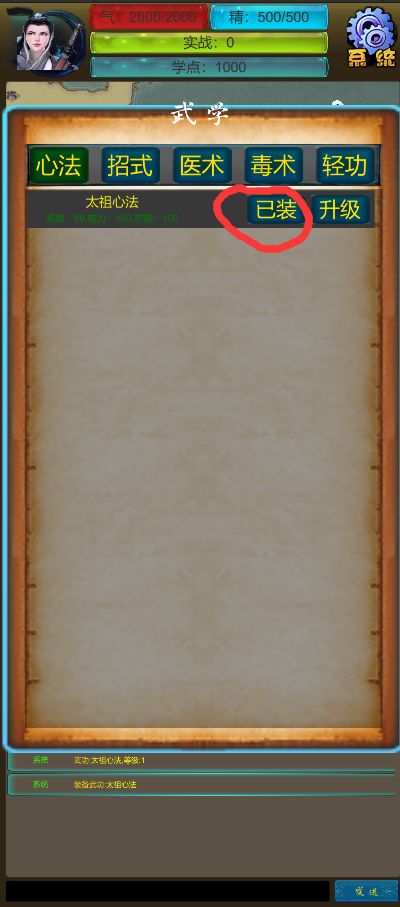 领取基本武学,接下来选择第三项做个初始任务,领取初始资源,接下来不要忘了去武道堂,实装武功