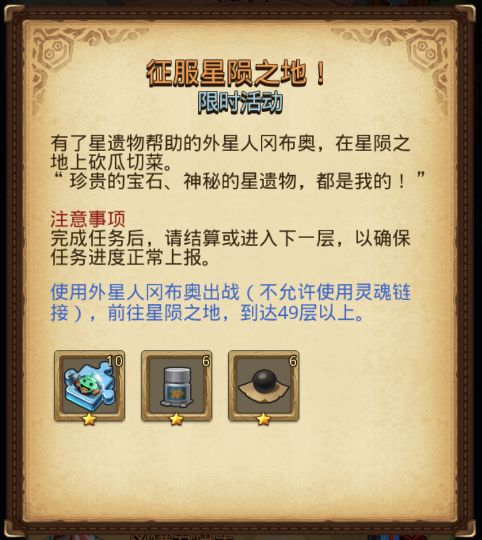 1、开放番外篇迷宫星陨之地,可在商城花费钻石购买开启,通关后可获得星界使者冈布奥