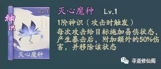 灭心魔种:每次攻击给目标施加易伤状态,产生暴击后,附加额外的50%伤害,并移除该状态;