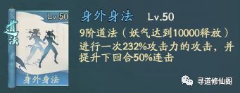 身外身法:进行一次160%攻击力的攻击,并提升下回合50%连击;