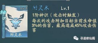 附灵术:每次的攻击附加目标当前生命值3%的伤害,最高造成45%攻击伤害;