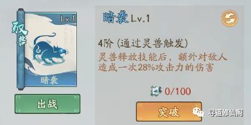 暗袭:灵兽释放技能后,额外对敌人造成一次28%攻击力的伤害;