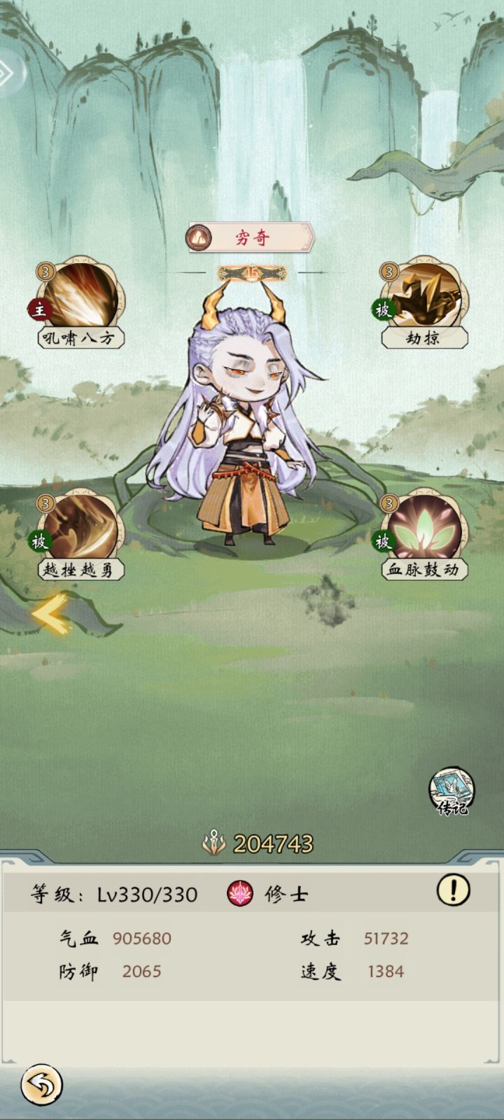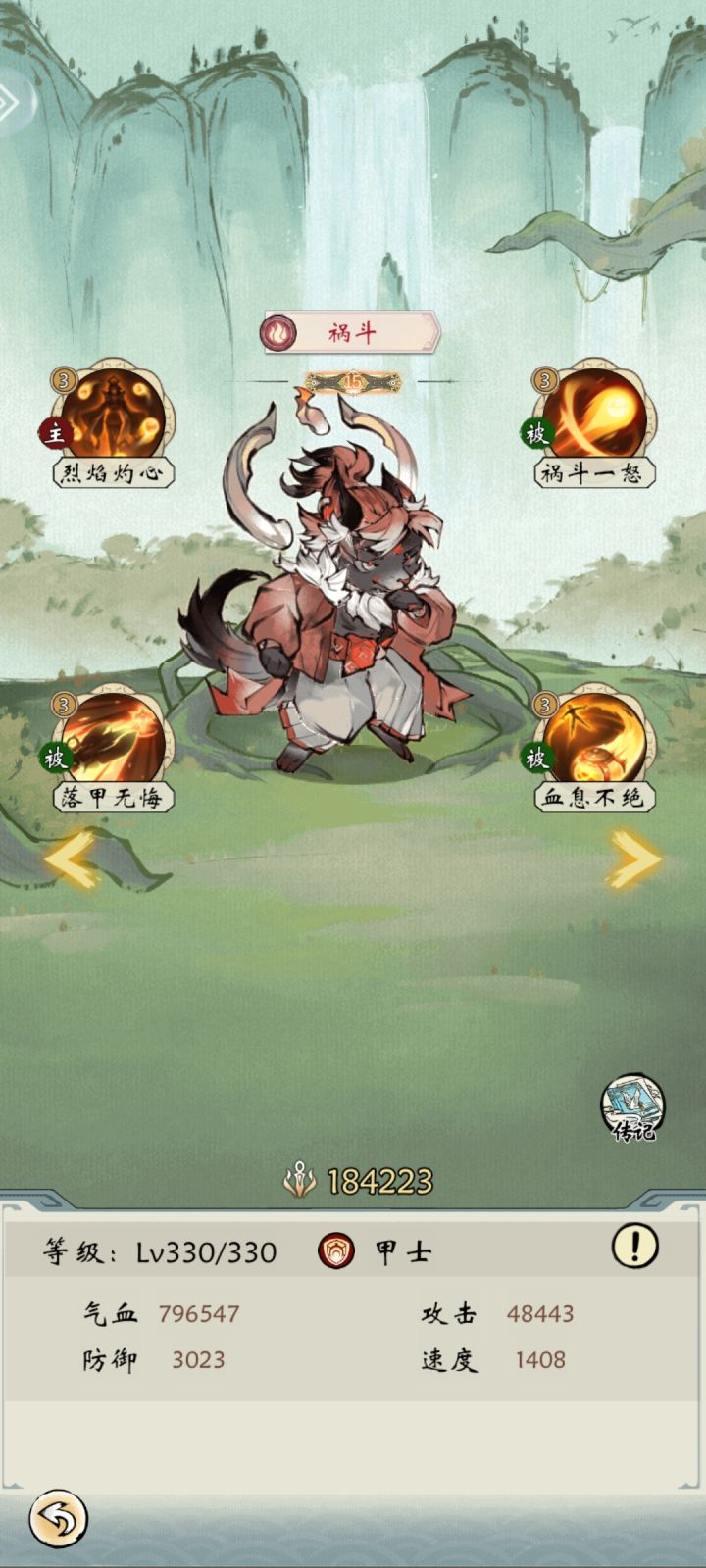 2.开局四个圣灵的选择,我更推荐选择祸斗或者禅玉,选择祸斗是因为祸斗技能里面有一个挨打回血对于前期推关可以单上一个祸斗(前面关卡不可以跳过单上祸斗更快推关)并且祸斗建议升到九星后面可以直接给旱魃吞掉,如果有小氪思想的玩家可以选禅玉,毕竟对于前面推关来说穷奇配五个禅玉也是很不错的选择