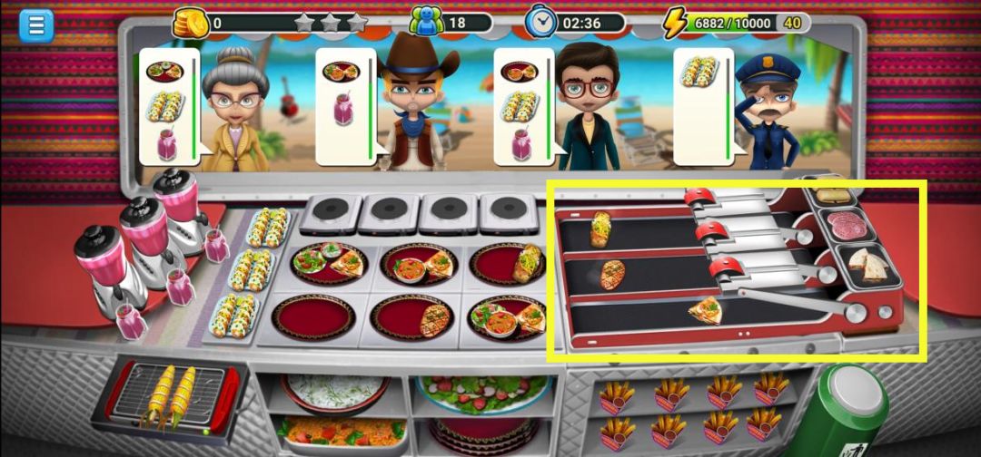 如果和目标有一点差距,我们可以使用钻石购买一些西班牙油炸饼。作为额外的收入哦。当顾客需要时,直接拖动即可。