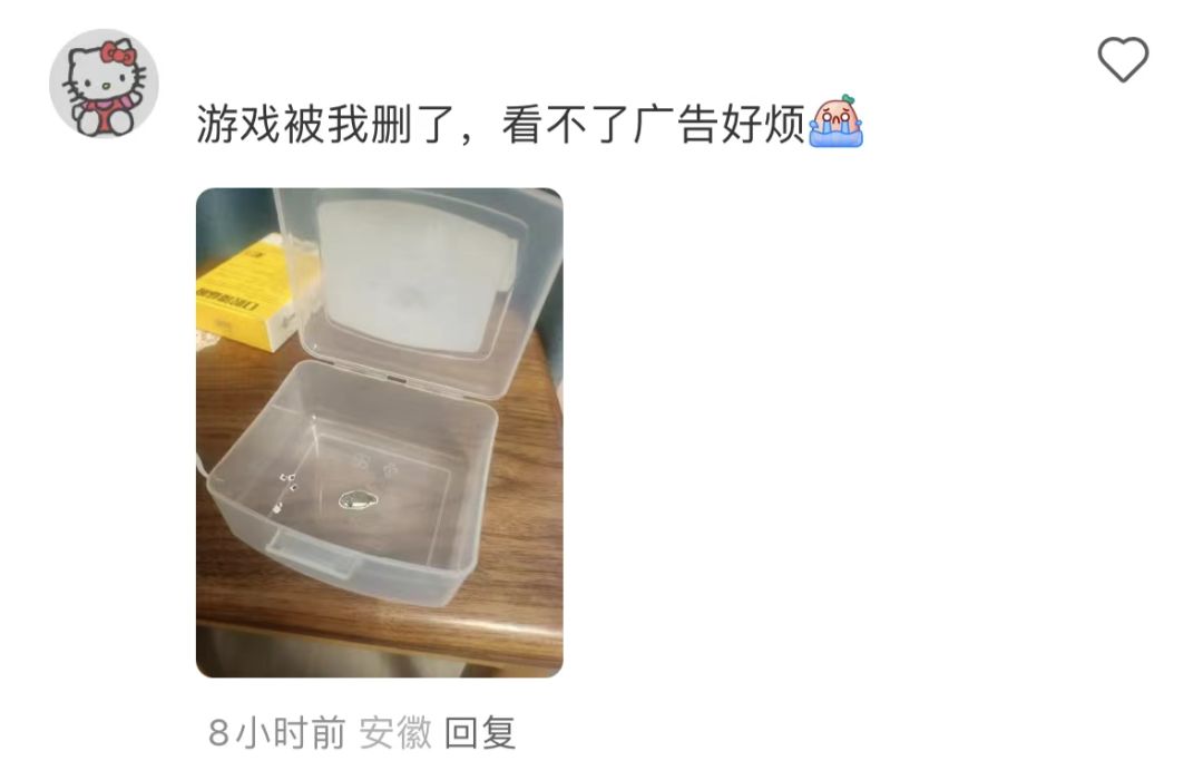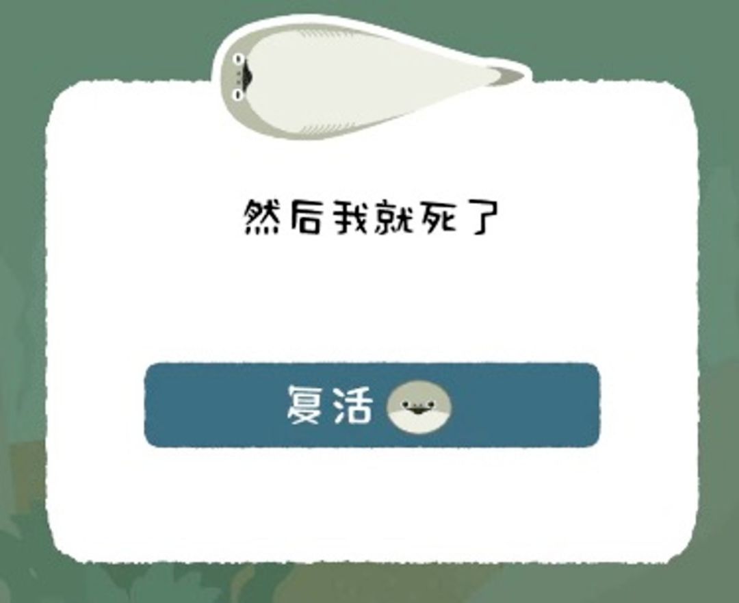这种游戏体验还挺厉害的,让我想起来小时候玩拓麻歌子,每次开机心里面都有期待,我养的小鱼到底是死是活。玩其他游戏,我觉得看广告是对我的打扰,但是玩这个游戏,看广告是对我的奖励,看广告能有8小时的净水小虾米,还有宝贵的复活机会。但这个广告接口时灵时不灵,所以我很珍惜看广告的机会,把每一次看广告的奖励,都用来复活。