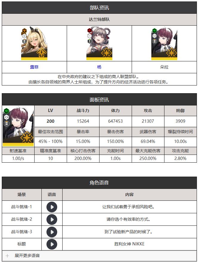 角色图鉴-朵拉(搬运自gamekee)
