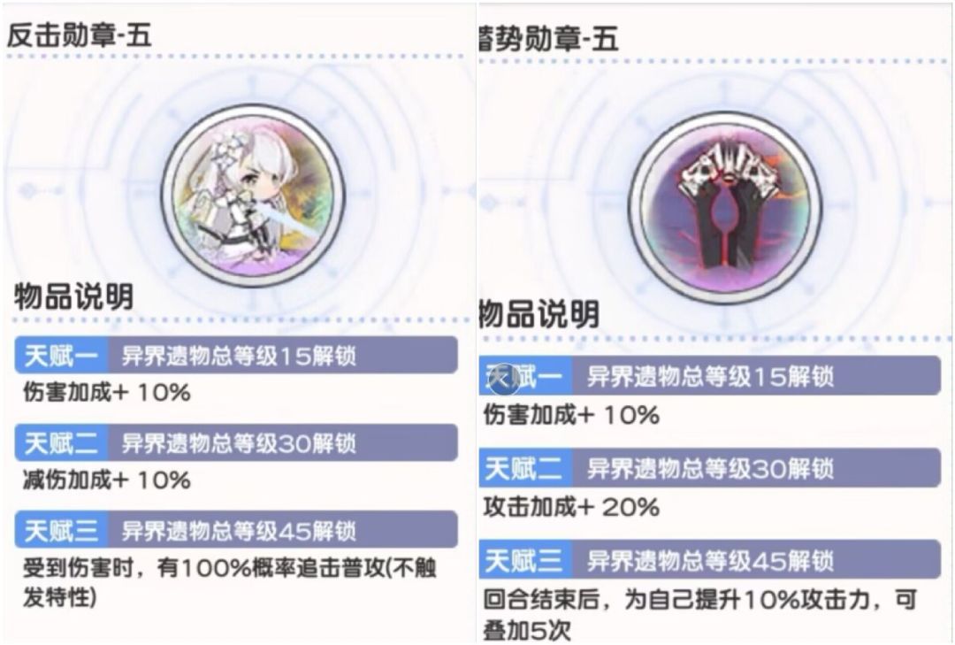 缺点:反击勋章触发的反击不能触发特性,也就是说不能触发哀怜4星的减能,不能触发心之所向三的百分比削血,不过可以触发神威印记和增伤类效果。