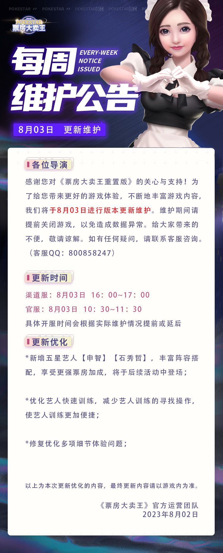 【8.03】更新公告