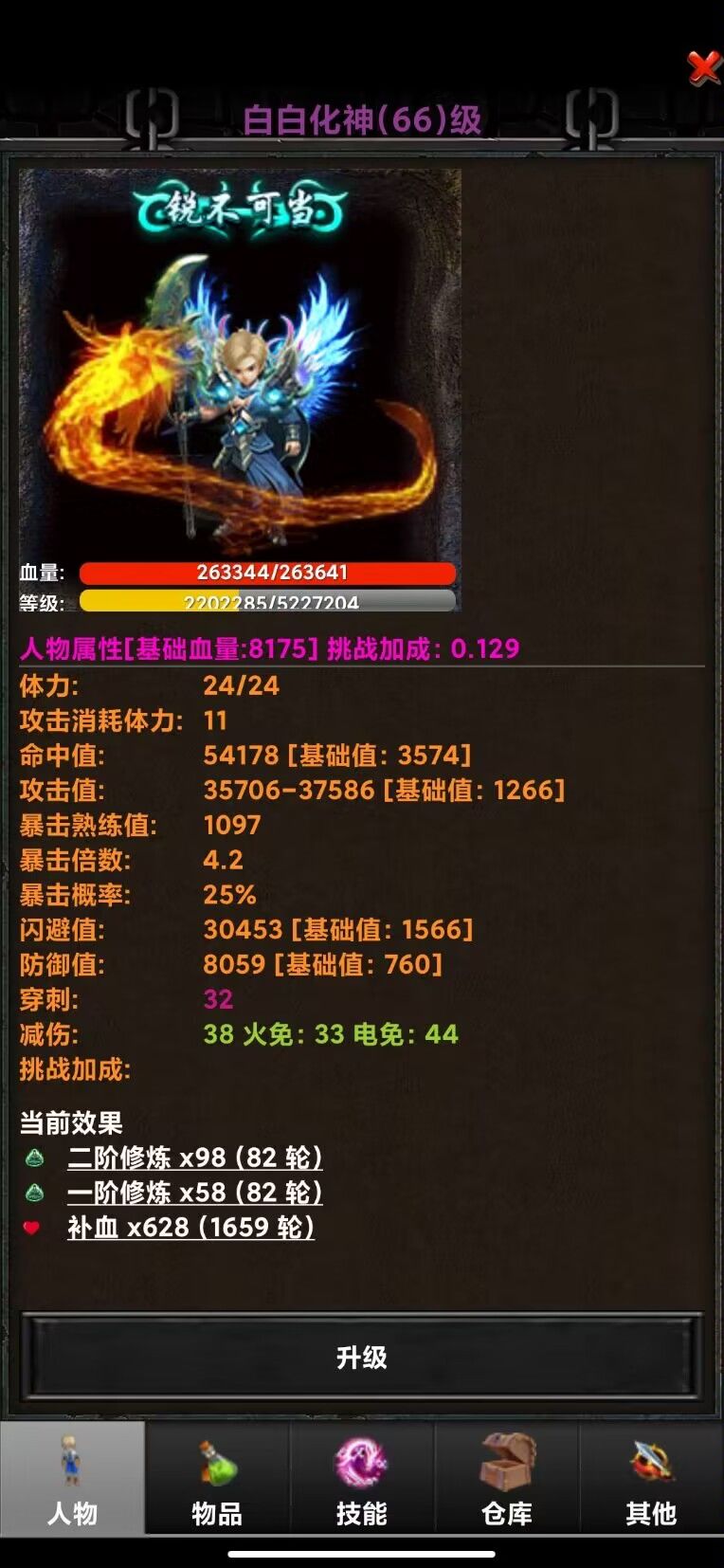 三阶装备同理,先刷护甲,在刷武器,异宝也可以更换成三阶吸血铃铛异宝了,这个阶段会卡一段时间,慢慢刷装备防具强化最好100+左右,项链要求重击熟练度400+以上的高强化,武器拿刀攻攻命就行,这个阶段要卡等级39刷装备,多存点钱为了后期打基础,还有刷散人挑战到64,这样会在中期过渡舒服一点。