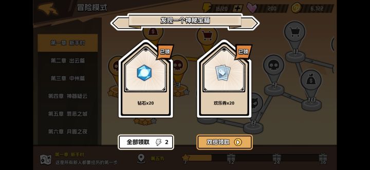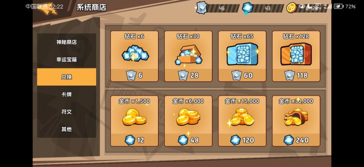 1500金币=1普通宝箱=1欢乐劵=1钻石=120金币
