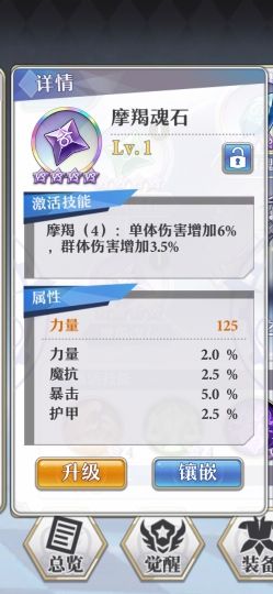 友情提示:如果大家实在不知道器灵石的属性怎么排列就直接在上边的星级评定上选取星级最高的几项,进行器灵石的升级提升。然后以此类推按照百分比摩羯带力量系元素、天秤带生命系元素,其他的器灵石魔抗护甲系属性元素。