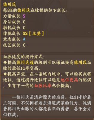 先来了解一下氏族血脉成长的侧重点。德川氏主要侧重于体魄和力量的成长。
