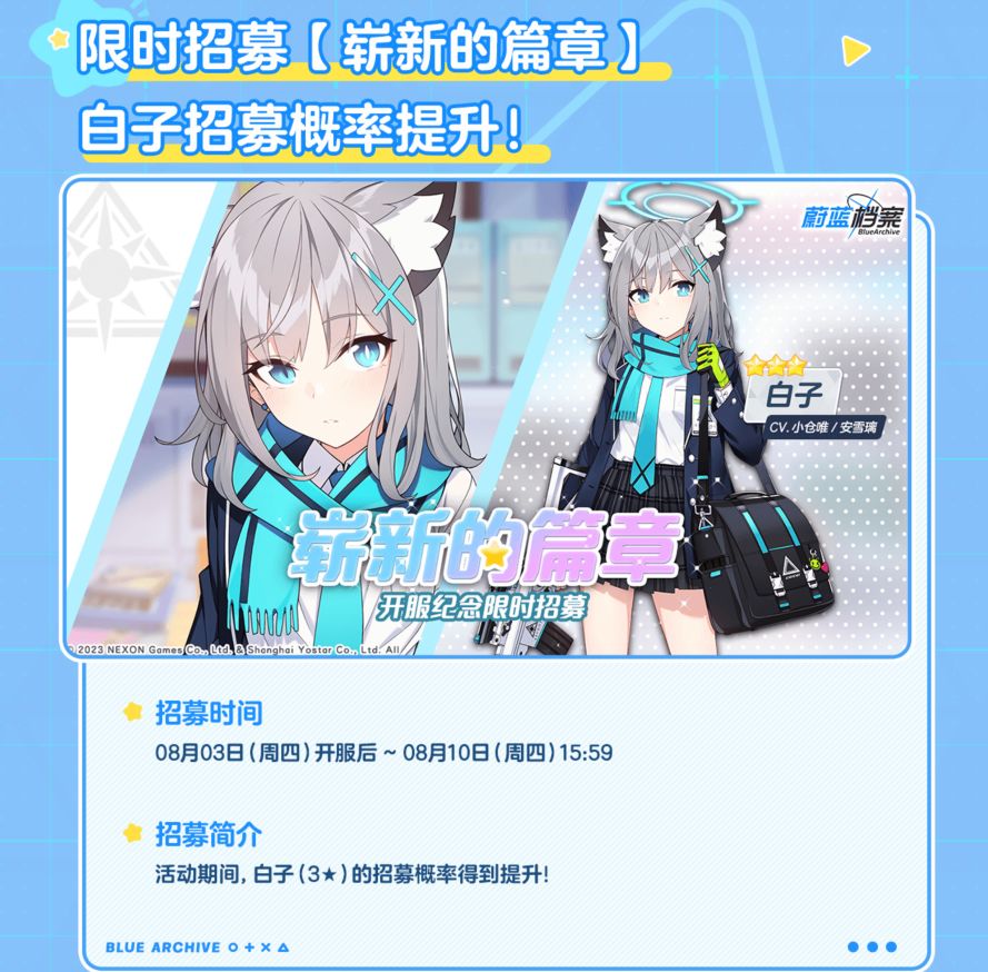 抽取推荐:初始钻可抽取,优先抽取白子的up卡池,出了会更好,没出也不会影响开荒的体验