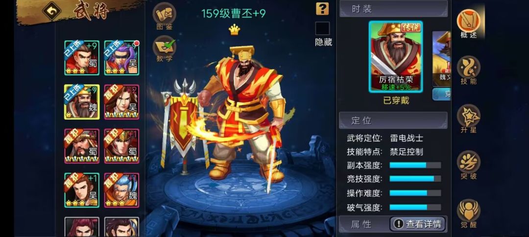 作为一个魏国战士型武将,曹丕在降世之初被系统定义为雷电战士、技能特点便是禁足控制,放眼曹丕武将定位便知:其竞技能力要略高于副本,操作难度适中偏上,而就衡量一个其副本能力的破气强度而言,曹丕的破气强度几乎与副本能力不相上下。看到这里大家可能就明白了,抛却竞技不谈,光曹丕的副本能力也算是契合当今高层试炼、天书秘境、百兽攻城等高难度副本的走势。