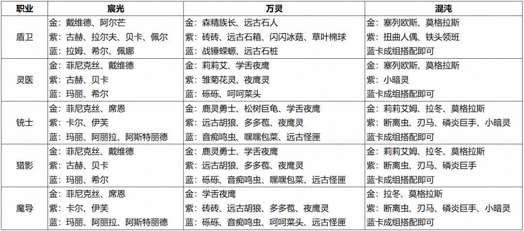 各职业推荐卡组: